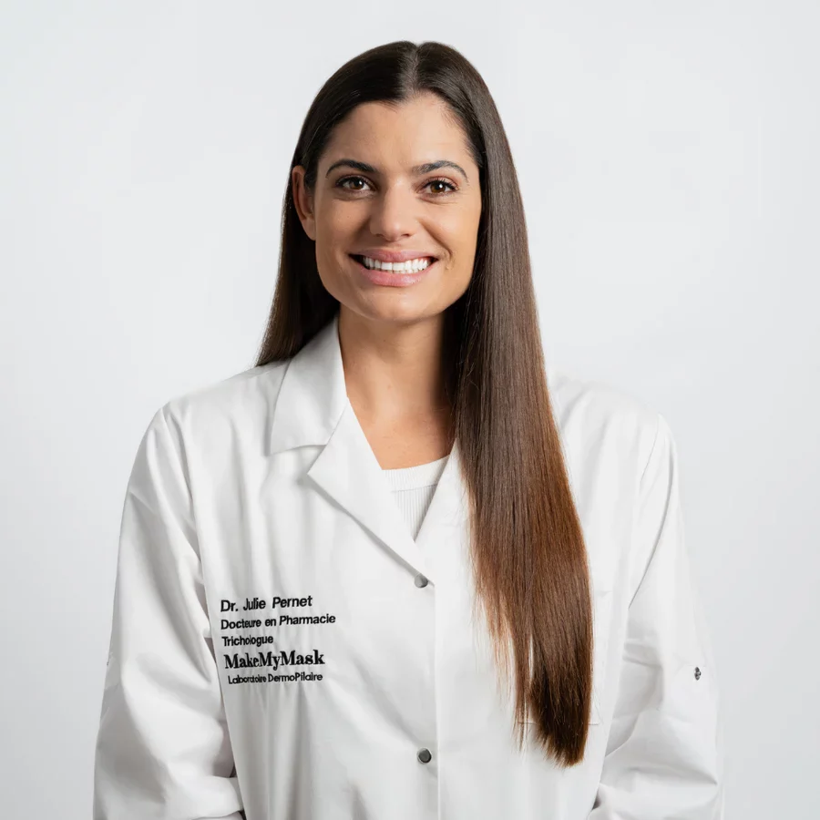Julie Pernet, Docteure en Pharmacie, elle décide de se former pour devenir experte en santé capillaire et pouvoir accompagner le plus grand nombre de personnes souffrants émotionnellement et physiquement de leurs problèmes capillaires et créée même ses propres formations trichologiques.En 2021, elle développe la première gamme de soins traitants du cuir chevelu à base de plantes thérapeutiques hautement concentrées et à l’efficacité prouvée.